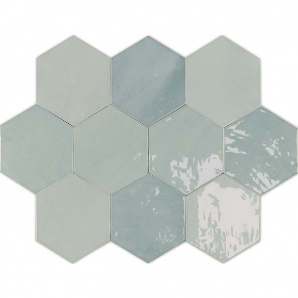 Zellige Hexa aqua - 10,8x12,4x0,9 cmZellige/ Marokkaanse tegeltjes